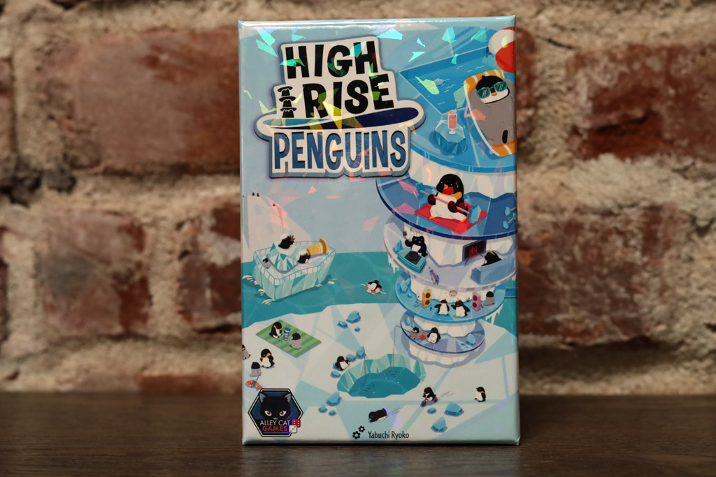 High Rise Penguins asks you to get rid of your hand and keep a flimsy iceberg tower from collapsing at the same time. Alley Cat Games publishes the English-language edition of Yura Yura Penguin, a Japanese-designed dexterity card game by Ryoko Yabuchi that first appeared in 2019 and later saw releases through multiple publishers. Alley Cat’s own pitch is blunt: “Uno meets Jenga.” You match color or symbol, but your card also tells the next player what physical problem they have to solve—add a new iceberg level, drop in ice crystals, or move a wooden penguin into a precarious “apartment” on the tower.
