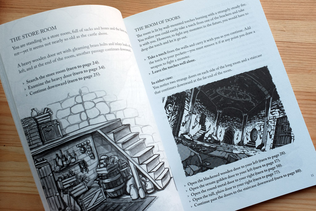 The experience is reminiscent of classic RPGs like King’s Quest, where player interaction, puzzle-solving, and story unraveling form the cornerstone of the gameplay. It is enjoyable for players who want a short D&D adventure on-the-go. The engagement requirements is minimal, just a notebook of any size to write in, a pencil or pen, and the book. Write down the stats of the protagonist, items, and health. Health may fluctuate based on actions taken. A thoroughly enjoyable read, ‘Into The Dungeon’ has set a high bar for future iterations in this genre.