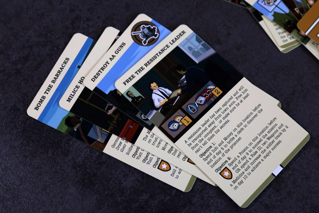Each game gives you 15 days to complete two missions before the occupation breaks the morale of your network or the calendar runs out. Missions ask for concrete acts of sabotage and logistics—deliver weapons, plant explosives, publish propaganda, move supplies through town—tasks that read like errands until patrols start sealing streets.