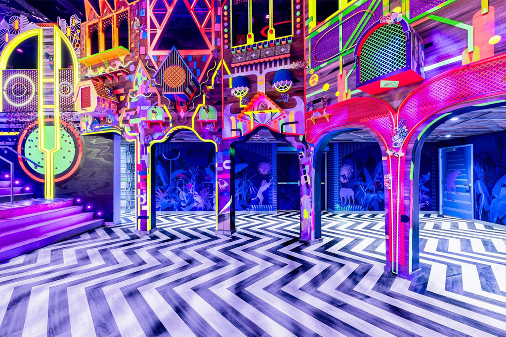 Unlike Meow Wolf’s other locations—entered through a surreal grocery store in Las Vegas or a haunted domestic interior in Santa Fe—the Los Angeles experience begins in a multiplex. Co-founder and executive vice president Sean Di Ianni told the Times the team is deliberately evoking the texture of a bygone era. “Sticky floor, popcorn vibes,” he said, describing a space designed to feel like a 1990s cinema, down to the waiting areas and concession counters. Familiarity is the lure. Disorientation comes later.